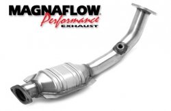 Magnaflow 49 States Except Calif. 23694 Direct Fit Converter?You can upgrade your street machine with a powerful intake a rip-roaring cat-back exhaust and a cutting-edge tuner for solid energy gains. But if you're still running with stock catalytic converters then you're letting horsepower slip through your fingertips. For fast-flowing exhaust and greatly enhanced engine efficiency step up your ride with a Magnaflow Direct-Fit Catalytic Converter for 49-State Emissions. More performance than replacement Magnaflow Direct-Fit Catalytic Converters are engineered to unclog the bottleneck caused by stock cats. Their special honeycomb-shaped precious metal catalyst maximizes the internal surface space so your exhaust gasses aren't slowed-down on their way out. Plus Magnaflow builds your Direct-Fit Catalytic Converter from 16-gauge stainless steel with welded seams for maximum durability. Best of all your ingenious Magnaflow Direct-Fit Catalytic Converter bolts right into your exhaust with no welding or tube bending needed. Simply pop out the old and wrench in the new. And you don't have to worry about smog: all 49-state Direct-Fit Catalytic Converters meet EPA standards for all states except California. Features * Unleash your hidden horsepower-Magnaflow Direct-Fit Catalytic Converters for 49-State Emissions deliver smooth exhaust flow that's clean as a whistle * Magnaflow Catalytic Converters are custom-made for a direct factory-replacement fit * Honeycomb-patterned internal catalyst maximizes the surface area your exhaust flows over for greatly reduced restrictions * Your Magnaflow Direct-Fit Catalytic Converter bolts into place with no welding or pipe bending required * Constructed from long-lasting 16-gauge steel with welded seams * Meets all EPA standards for states other than California * 5-year 50 000-mile external warranty; 25 000-mile internal warranty
